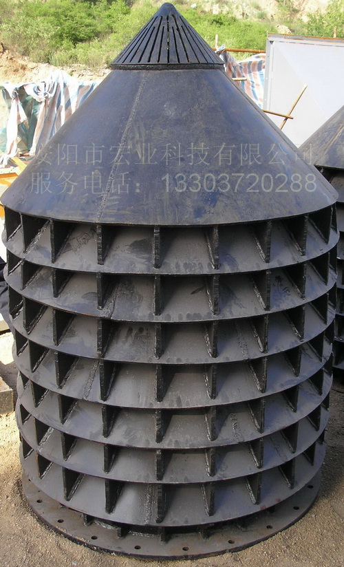 活性石灰豎窯在煅燒過程中,供風(fēng)的大小和均勻程度,對石灰的活性度和燒結(jié)的生熟均勻至關(guān)重要,如果風(fēng)不均勻就會出現(xiàn)偏燒,以至使過燒和燒不透現(xiàn)象發(fā)生,大大影響了活性石灰的質(zhì)量。我公司研制的計算機(jī)仿真風(fēng)帽吸取了國內(nèi)外的經(jīng)驗,結(jié)合原燃料(石灰和焦炭)的質(zhì)量和塊度的大小,用計算機(jī)作概率仿真設(shè)計風(fēng)帽。概率仿真風(fēng)帽是一種新型的供助燃風(fēng)的一進(jìn)風(fēng)帽,助燃風(fēng)從下口環(huán)形進(jìn)入,然后通過筒壁若干個風(fēng)孔出口進(jìn)入爐膛,所鼓風(fēng)經(jīng)風(fēng)帽不同孔徑的風(fēng)口和不同高度可使所送風(fēng)壓風(fēng)量概率分布到窯內(nèi)整個截面。